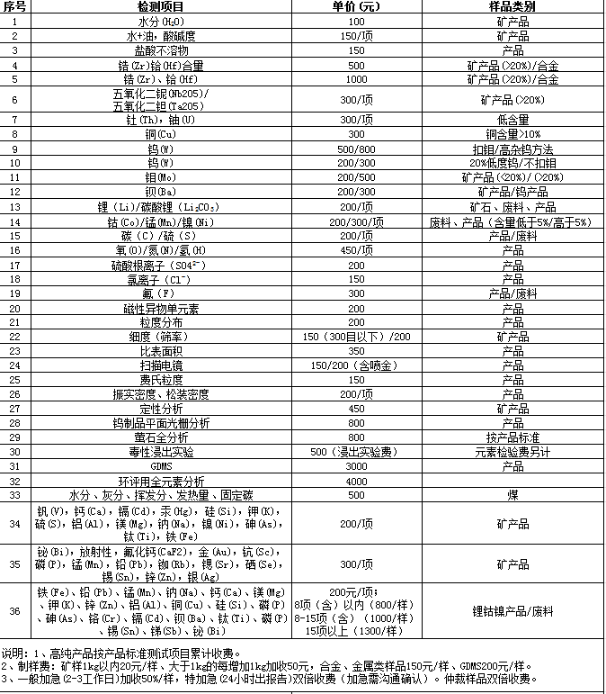 八、稀土、钨、新能源产品检测价格表