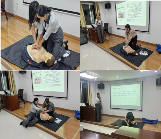 在培训现场,陈雅莉首先强调了现场急救“黄金4分钟”的重要性,系统讲解了心肺复苏的基本原则、操作要点、注意事项等关键知识,包括如何确保救护人员自身安全、准确判断患者状态、规范执行急救措施及科学评估抢救效果。随后,她亲自演示了心肺复苏的完整流程,从评估患者意识、呼吸及脉搏,到胸外按压、清理口腔异物、确保气道畅通,再到实施人工呼吸,每一步都配以详尽讲解与精准示范,耐心指导职工们掌握每个关键步骤,确保职工能够将理论知识转化为实操技能。