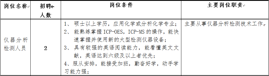 江西省钨与稀土产品质量监督检验中心(江西省钨与稀土研究院)是江西省质监局直属的全额拨款事业单位,主要承担全省钨与稀土及其它有色金属产品质量监督抽查检验、仲裁检验和企业委托检验;开展钨与稀土等有色金属矿产品检验,地质实验测试,环境监测与检验,分析检测技术培训,司法鉴定,国家、行业和地方标准的制修订工作,以及钨与稀土等相关领域内新技术、新产品研究、开发应用与推广等工作。根据工作需要,现面向社会公开招聘以下岗位工作人员(编制外),现就招聘具体事项公告如下:
