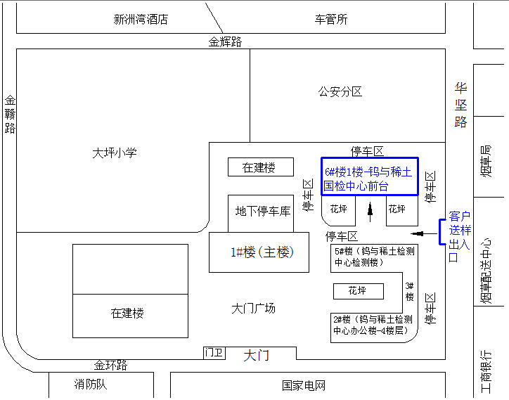 因工作需要,钨与稀土国检中心前台收样点由原1号楼一楼大厅搬迁至院内6号楼一楼大厅,中心前台电话、传真不变。送样客户可由华坚路侧门直接进入,驾车客户可将车辆停放于侧门外停车位,或直接停放于6号楼前。由此带来的不便之处,敬请原谅!