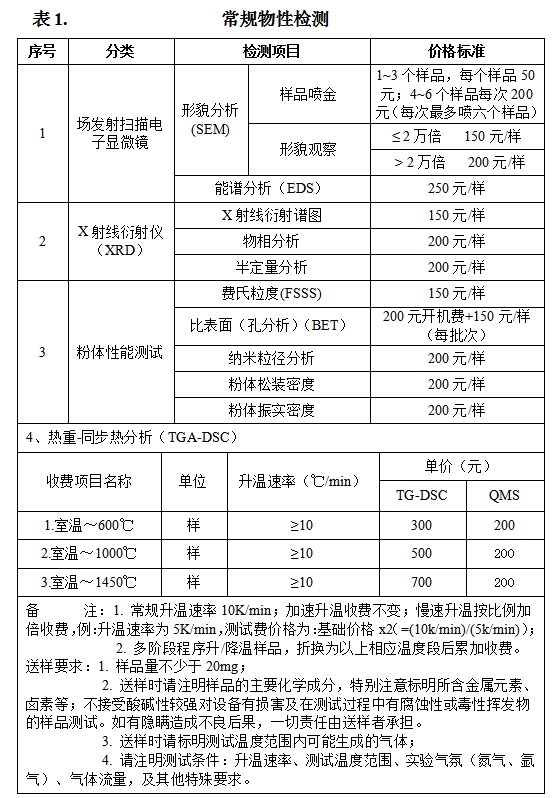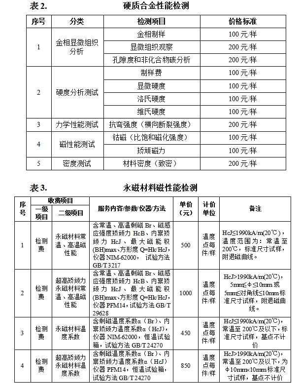 九、物理性能及磁性能检测价格表