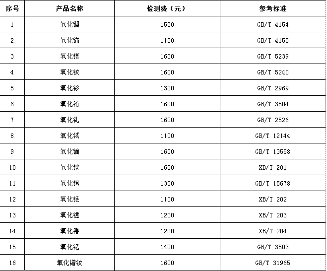 六、稀土产品分析检测价格表