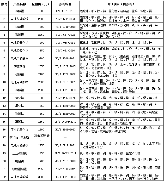 八、稀土、钨、新能源产品检测价格表